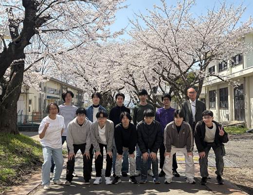 4月3日に新しい研究室配属学生の歓迎会を開催しました.学内棟外での宴会が禁止されているため,室内でのピザパーティでした.写真は満開の桜の前で撮りました.