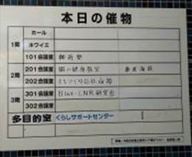 会場写真(左)と案内板(右)